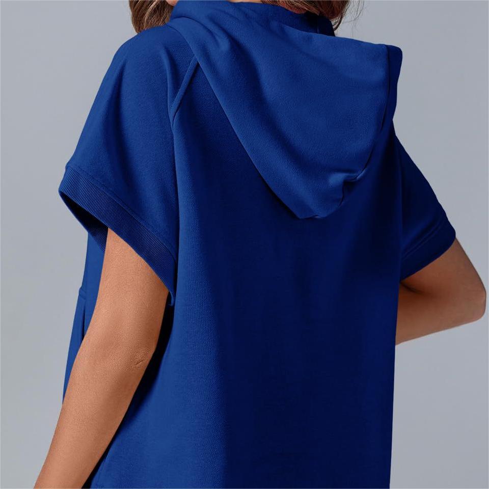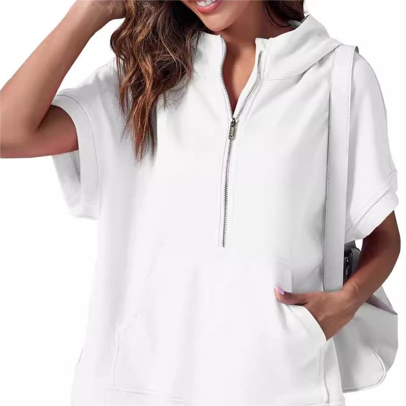 2024 Oversized Casual Half Zip Kortärmad Pullover Toppar med fickor (Köp 2 Fri frakt)
